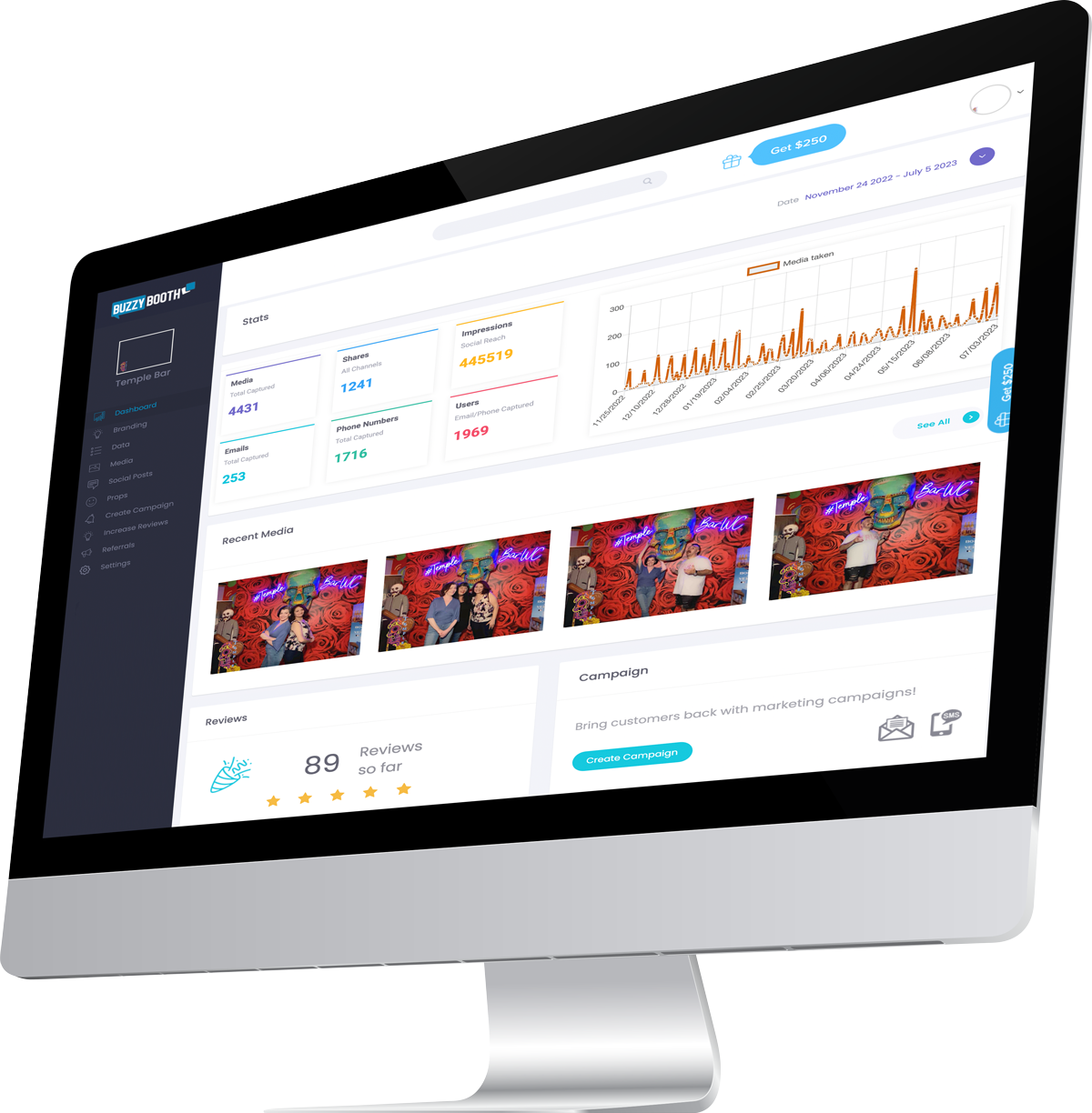 With BuzzyBooth, you gain valuable insights into customer behavior and preferences. Our powerful analytics dashboard provides you with real-time data on user engagement, social media reach, and photo booth usage. This data allows you to make informed marketing decisions, identify trends, and optimize your social media strategies for maximum impact.